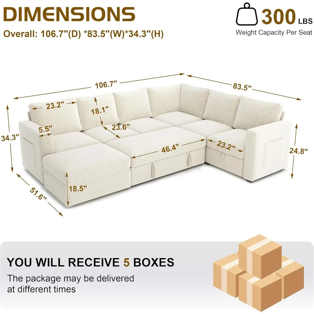 - Shipped in 5 separate boxes and requires assembly; after unboxing, allow 48 hours for the foam to fully expand to restore fullness and comfort, plus a pull-out bed for overnight guests.