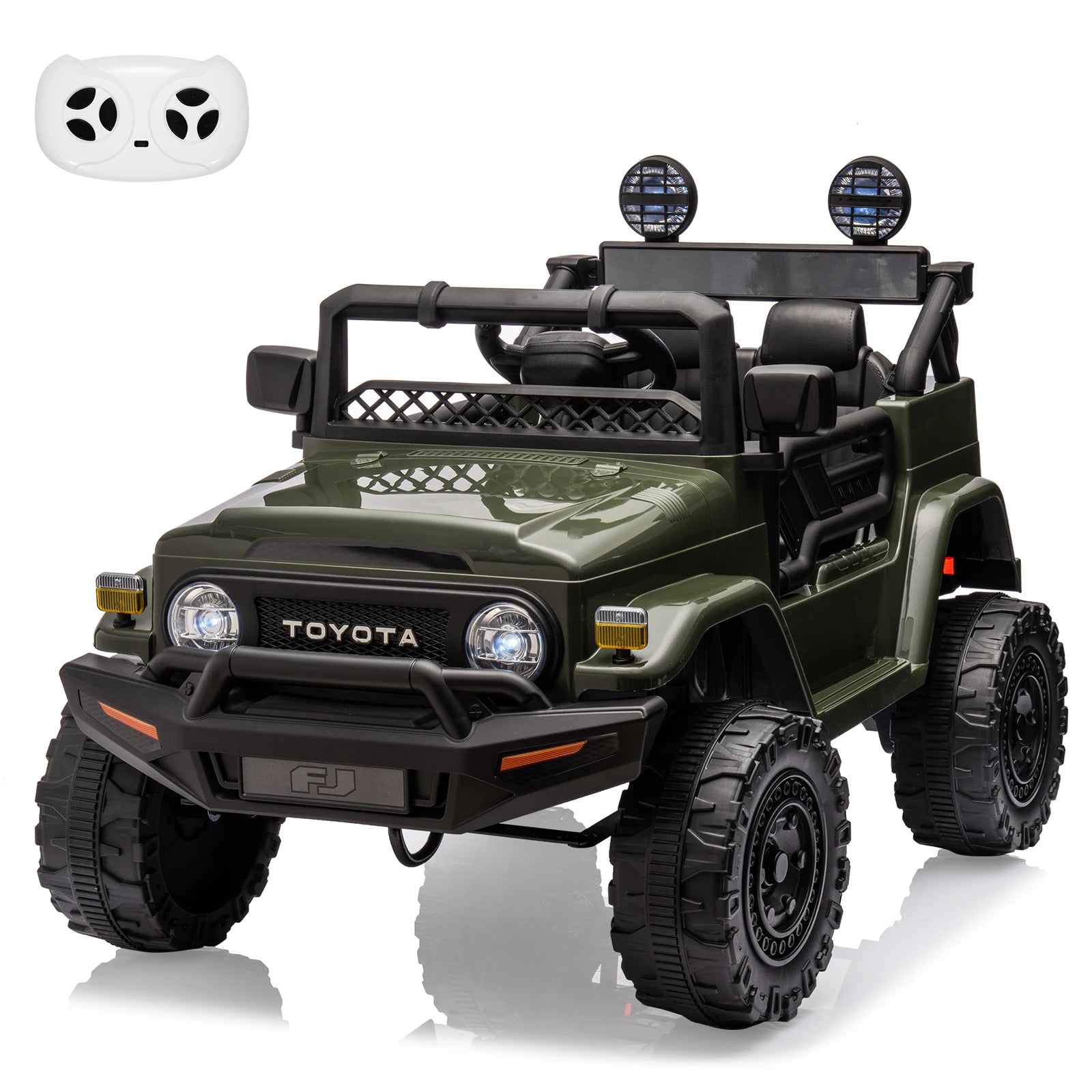 - Licensed Toyota-inspired styling with working LED headlights, horn sounds, EVA wheels, an MP3/USB player, and double doors that open and close like a real vehicle.