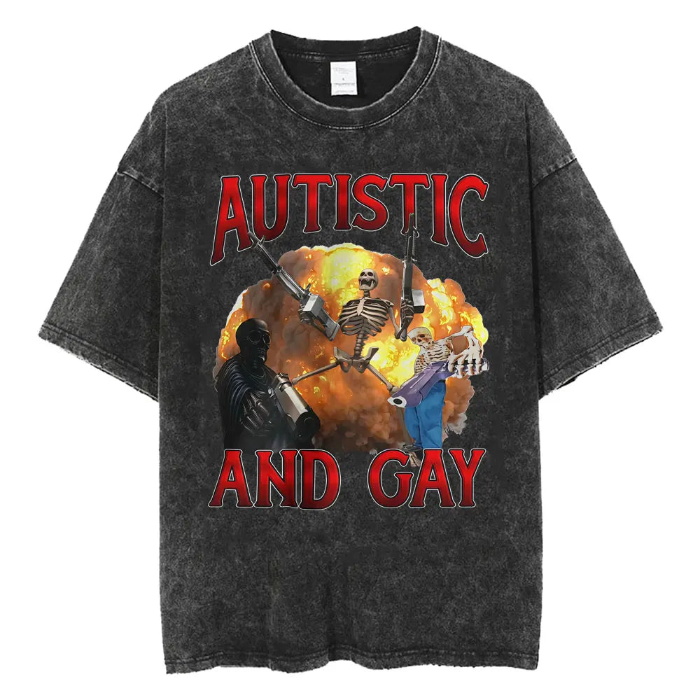 DshztoomaCN Autism Skeleton Meme T Shirt Men Women Harajuku Gothic