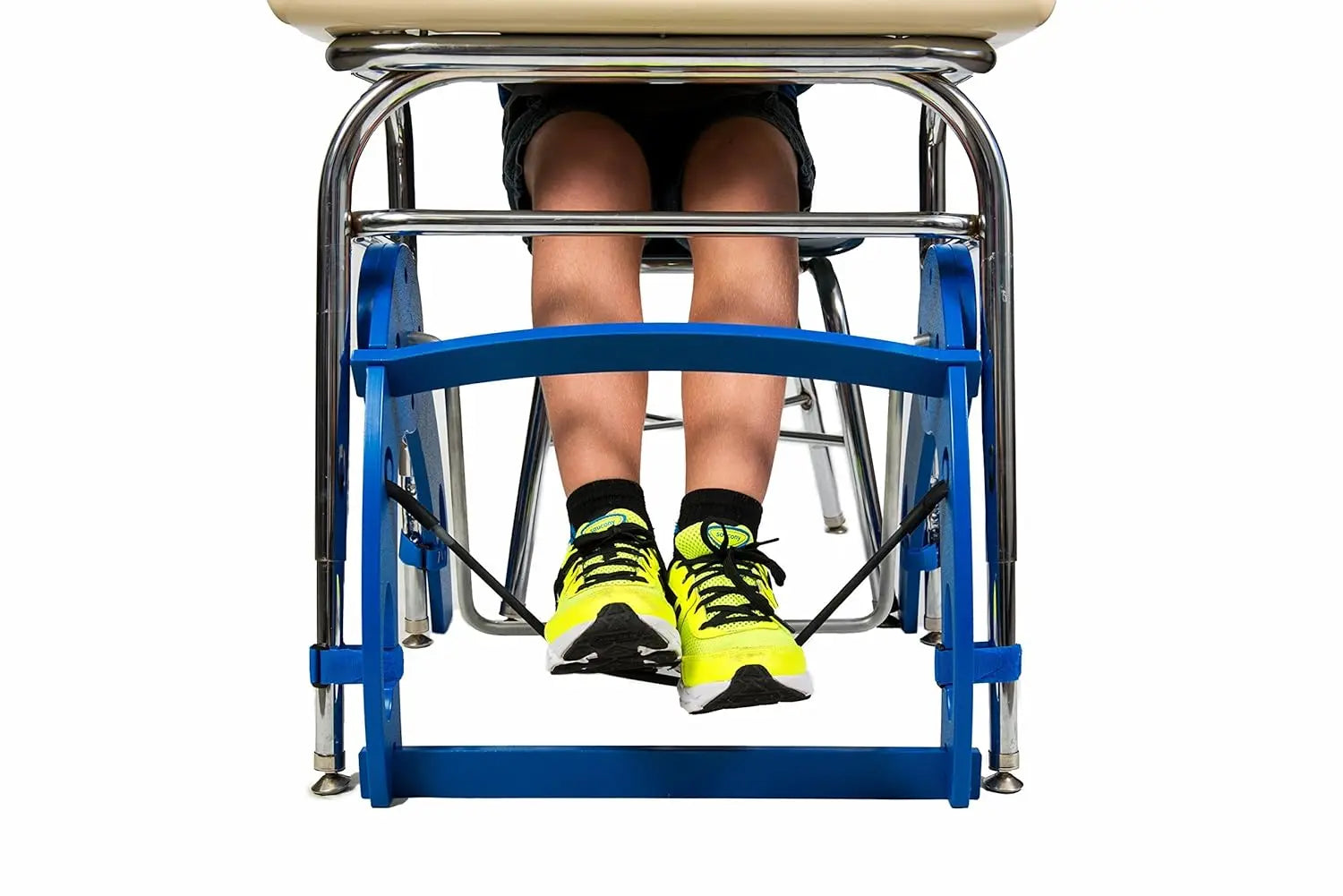 - Dual-movement design combines a smooth foot swing bar with a latex-free sensory foot band for steady movement that aids focus and self-regulation.