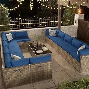 - Flexible 14-piece layout lets you rearrange 8 armless sections, 4 corner modules, and 2 tempered-glass coffee tables to fit your patio and daily needs, enabling U-shaped, L-shaped, or linear configurations for balconies, decks, or gardens.