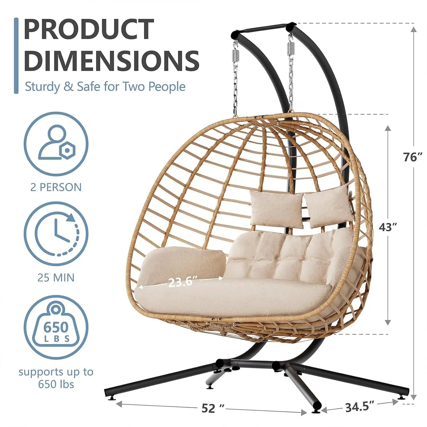 Versatile & Thoughtful Gift: Ideal for both indoor and outdoor spaces, this double egg chair with stand fits gardens, patios, or living rooms. It’s foldable for easy storage, making it a perfect 2 person egg chair gift that’s both stylish and functional