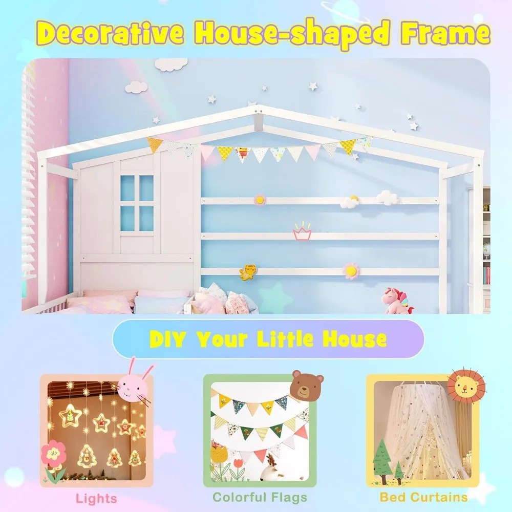 - Creative House Frame: The bed's house frame design with a roof top, a decorative window, and 3 crossbars offers a blank canvas for children's creativity. It encourages imaginative play and can be personalized with curtains, LED lights, or other decorative elements.