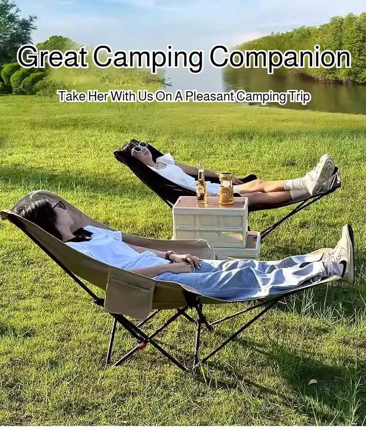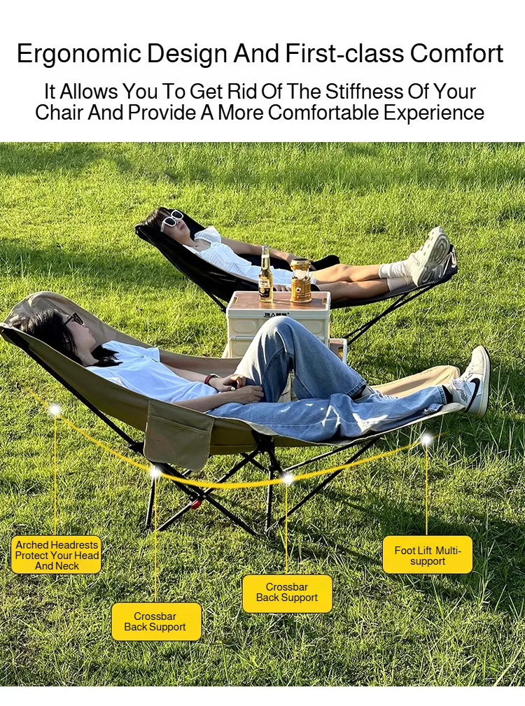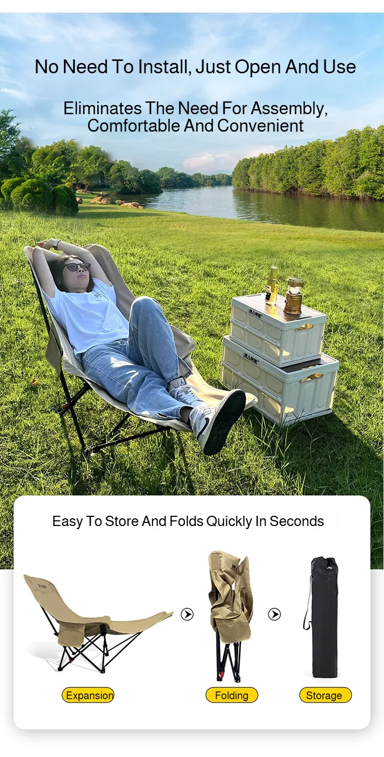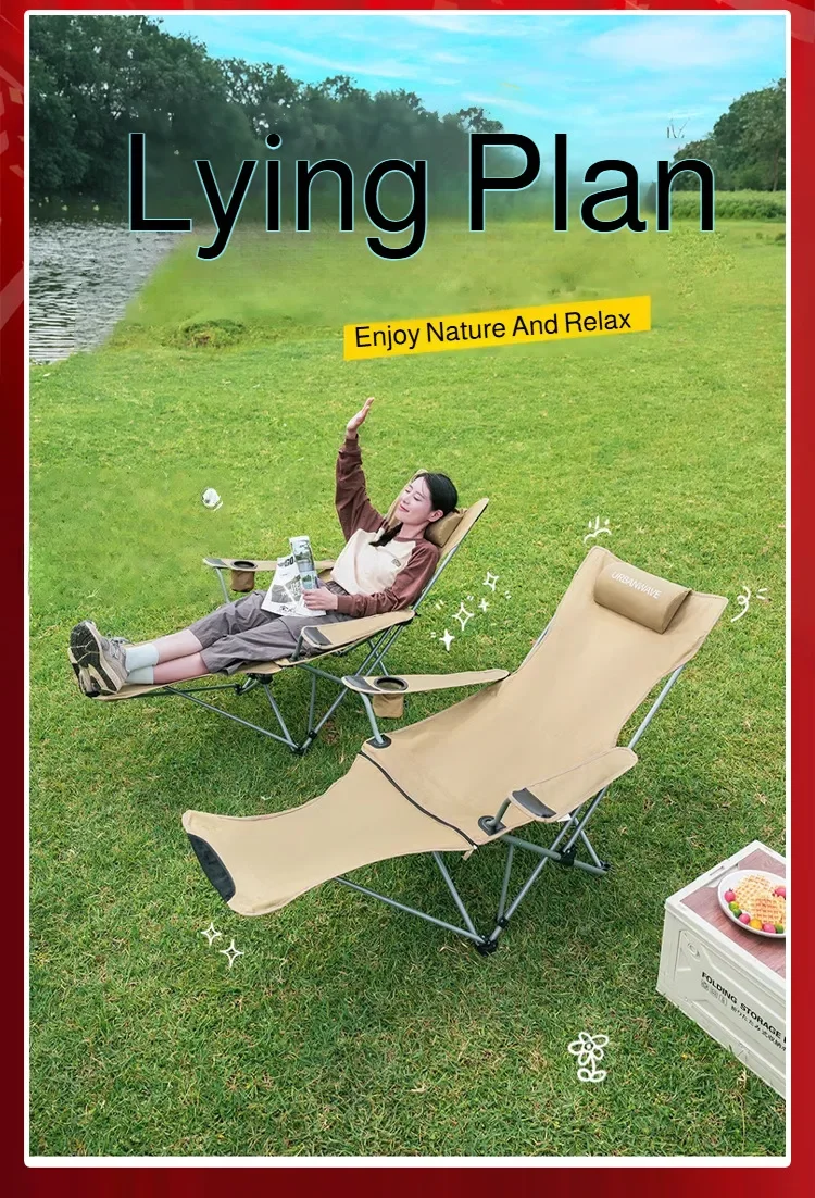 Portable Folding Chair Folding Recliner Curved Headrest Comfort Experience Easy Storage Lunch Foldable Recliner With Leg Rests