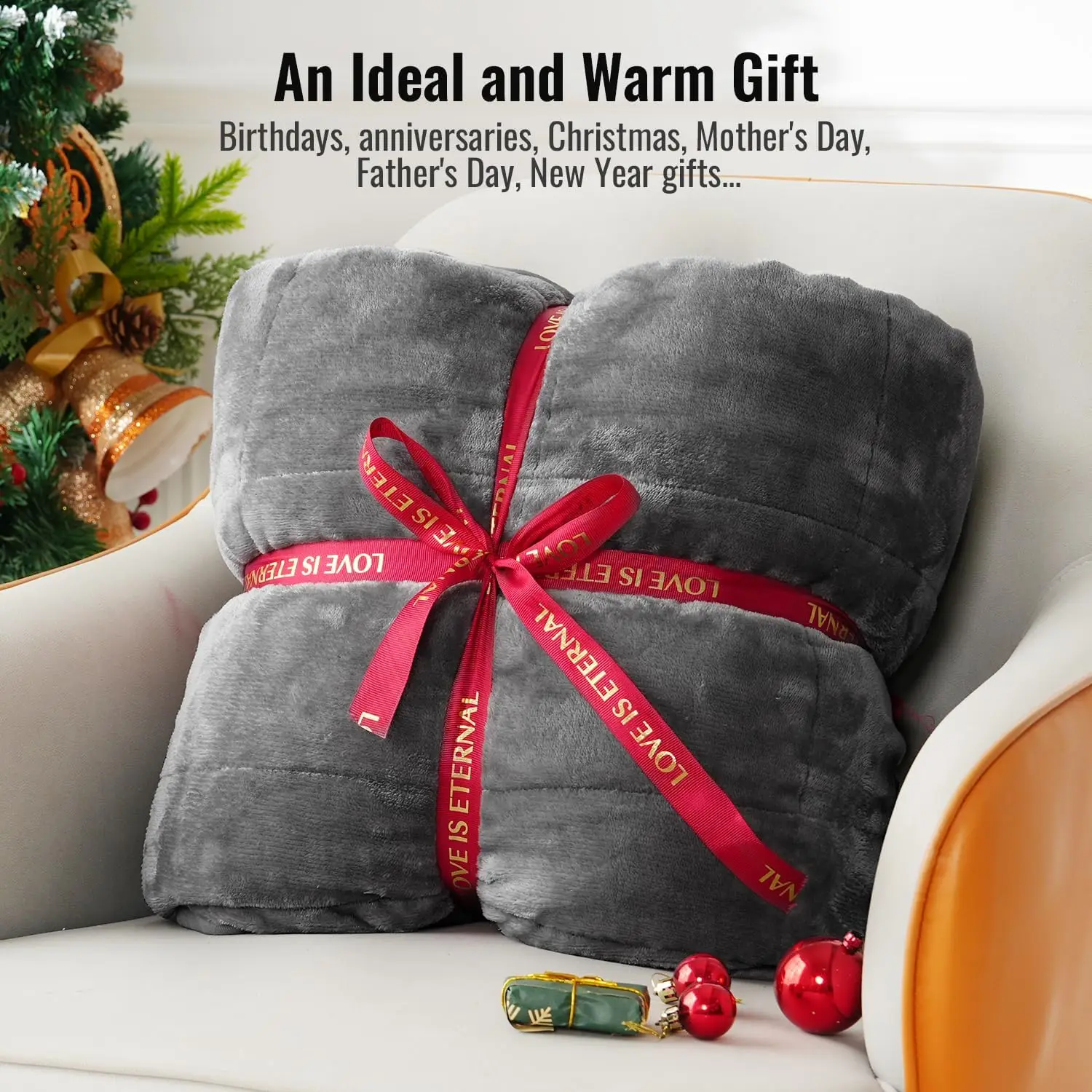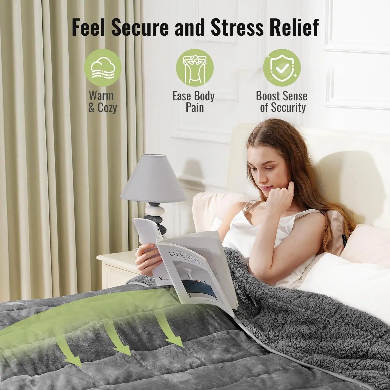 Queen Size Weighted Blanket 15lbs 60x80 Inches, Soft Plush Fleece and Cozy Sherpa for Sleep and Calming, Grey