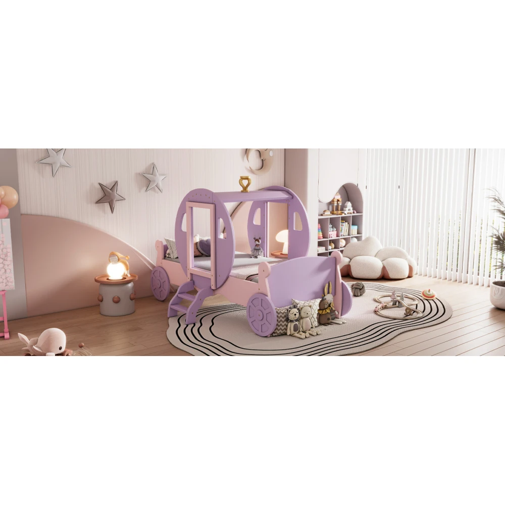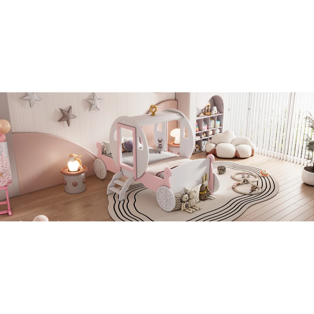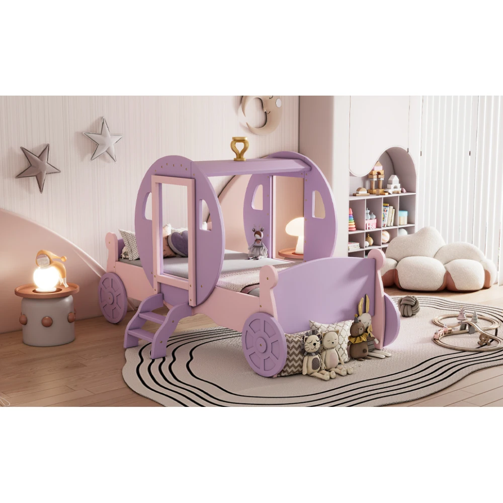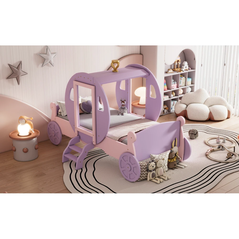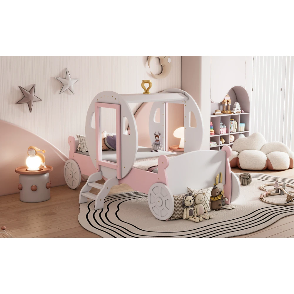 - [Princess Carriage Bed] The whole bed is designed in the shape of a carriage.It is so cute that your girl will love it.It masterfully blends with all styles of home decoration, and helps to complete and enhance the look of any bedroom.